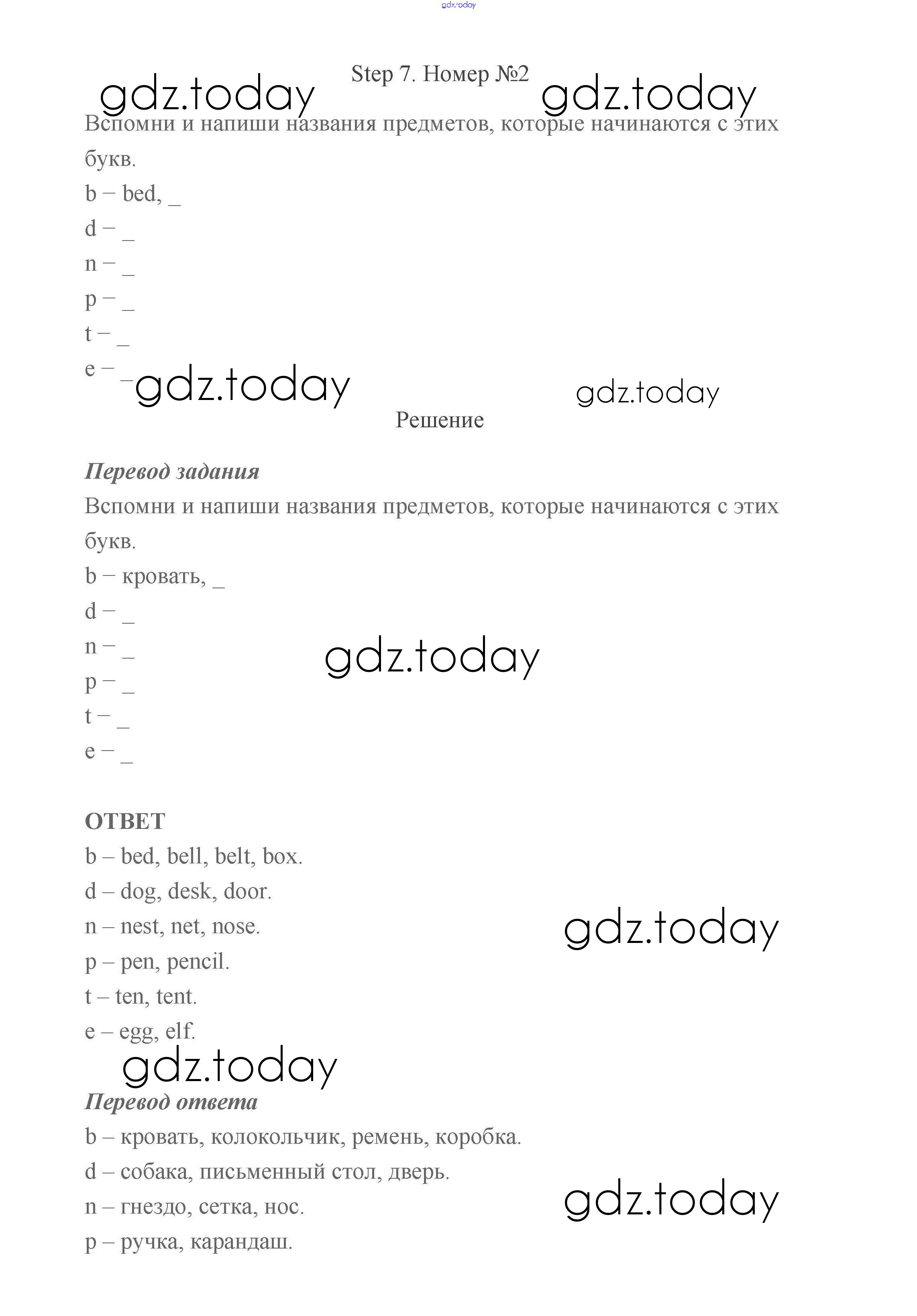 На страницах сайта gdz.today вы найдете учебный и вспомогательный материал, направленный на улучшения знаний школьной программы. ГДЗ - онлайн мир знаний Step (решение) 7 Рабочей тетради по Английскому языку для 2 класса Афанасьева, Михеева Дрофа Rainbow 2016