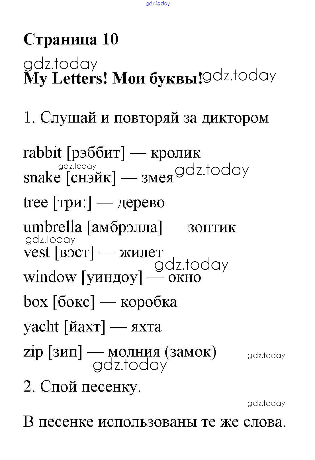 На страницах сайта gdz.today вы найдете учебный и вспомогательный материал, направленный на улучшения знаний школьной программы. ГДЗ - онлайн мир знаний Решение. Учебник 2017. Страницы 10 Учебнику по Английскому языку для 2 класса Быкова, Дули Просвещение, Просвещение Spotlight 2017, 2021