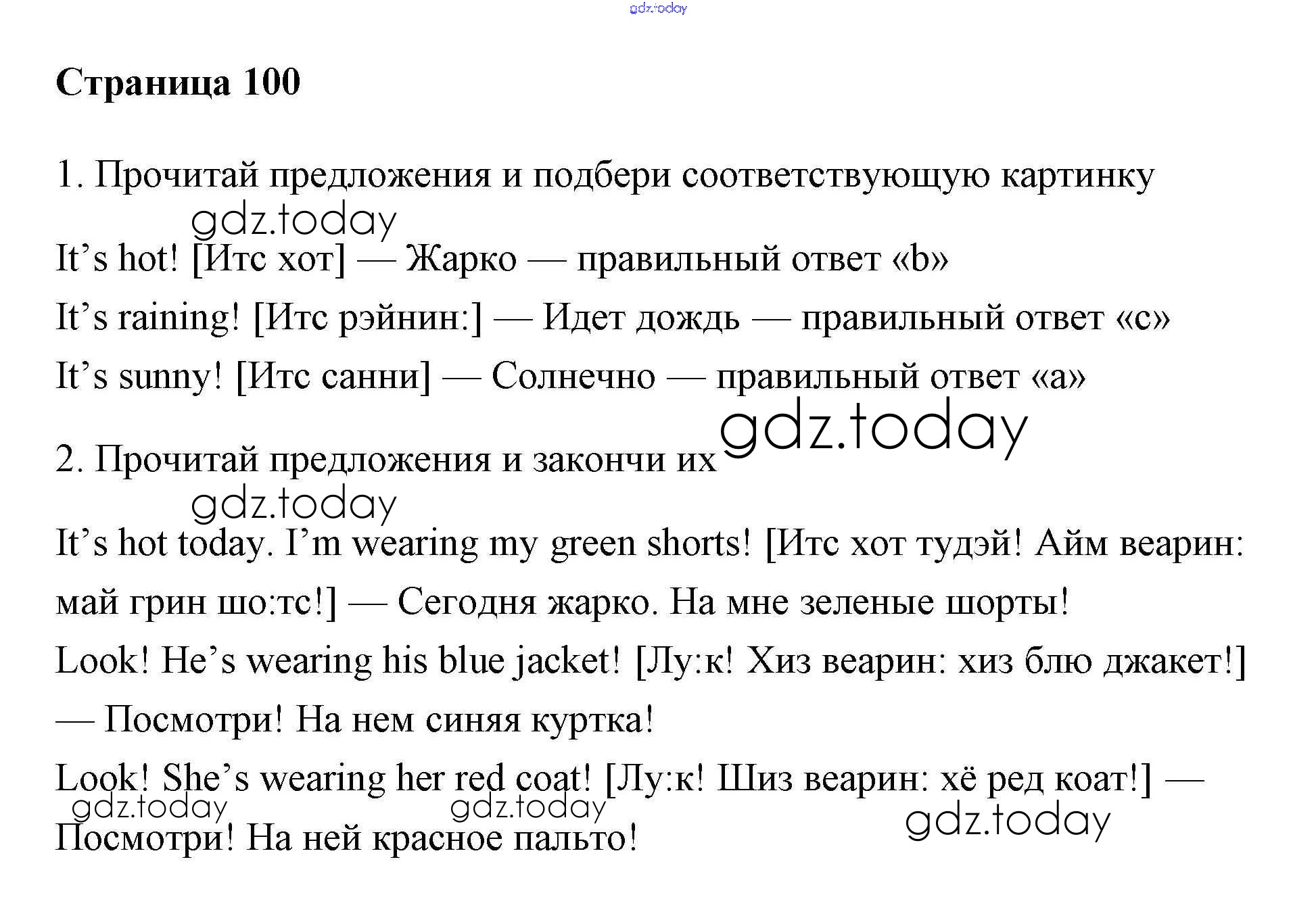 На страницах сайта gdz.today вы найдете учебный и вспомогательный материал, направленный на улучшения знаний школьной программы. ГДЗ - онлайн мир знаний Решение. Учебник 2017. Страницы 100 Учебнику по Английскому языку для 2 класса Быкова, Дули Просвещение, Просвещение Spotlight 2017, 2021