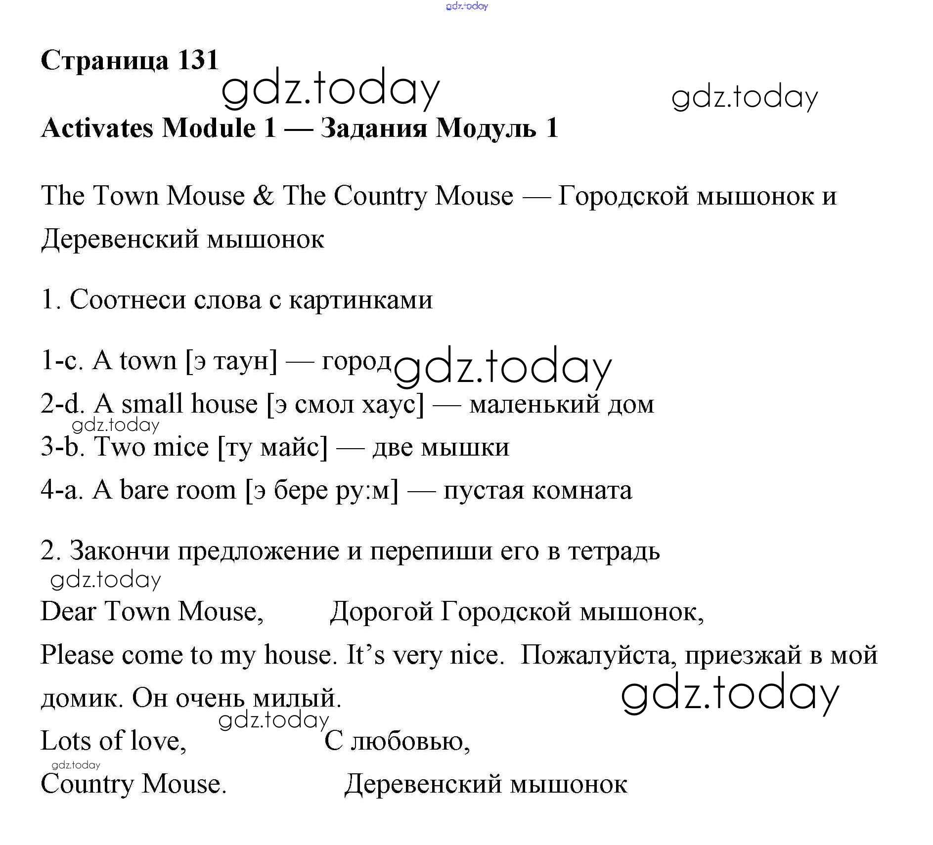 На страницах сайта gdz.today вы найдете учебный и вспомогательный материал, направленный на улучшения знаний школьной программы. ГДЗ - онлайн мир знаний Решение. Учебник 2017. Страницы 131 Учебнику по Английскому языку для 2 класса Быкова, Дули Просвещение, Просвещение Spotlight 2017, 2021