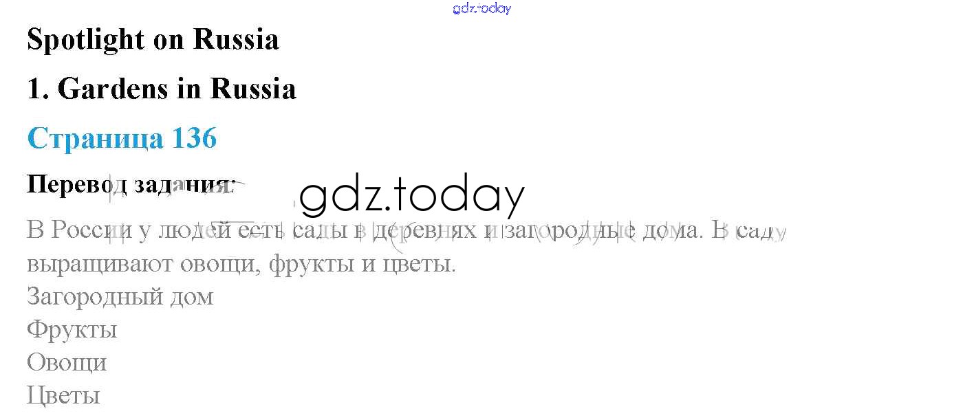 На страницах сайта gdz.today вы найдете учебный и вспомогательный материал, направленный на улучшения знаний школьной программы. ГДЗ - онлайн мир знаний Решение. Учебник 2017. Страницы 136 Учебнику по Английскому языку для 2 класса Быкова, Дули Просвещение, Просвещение Spotlight 2017, 2021