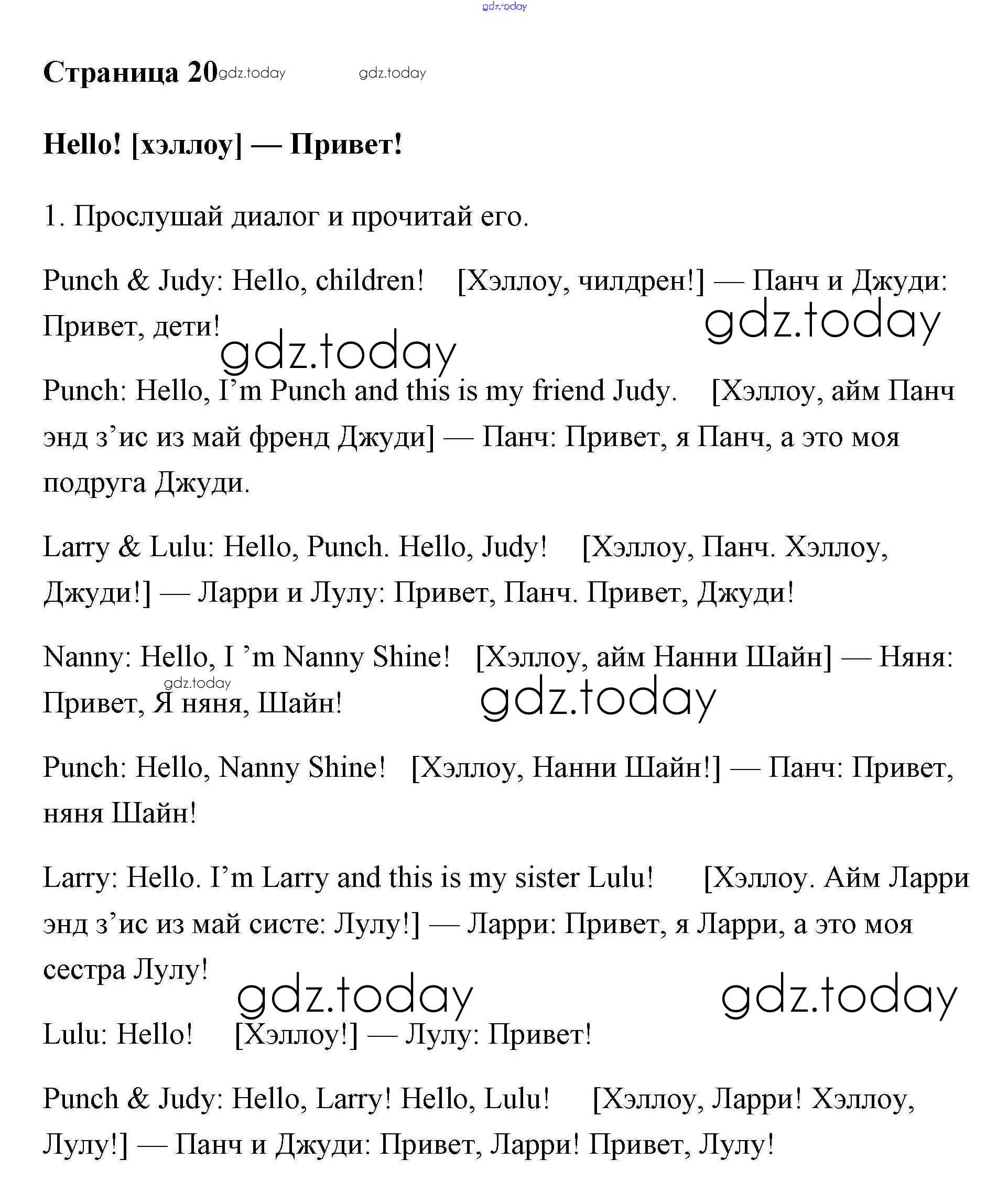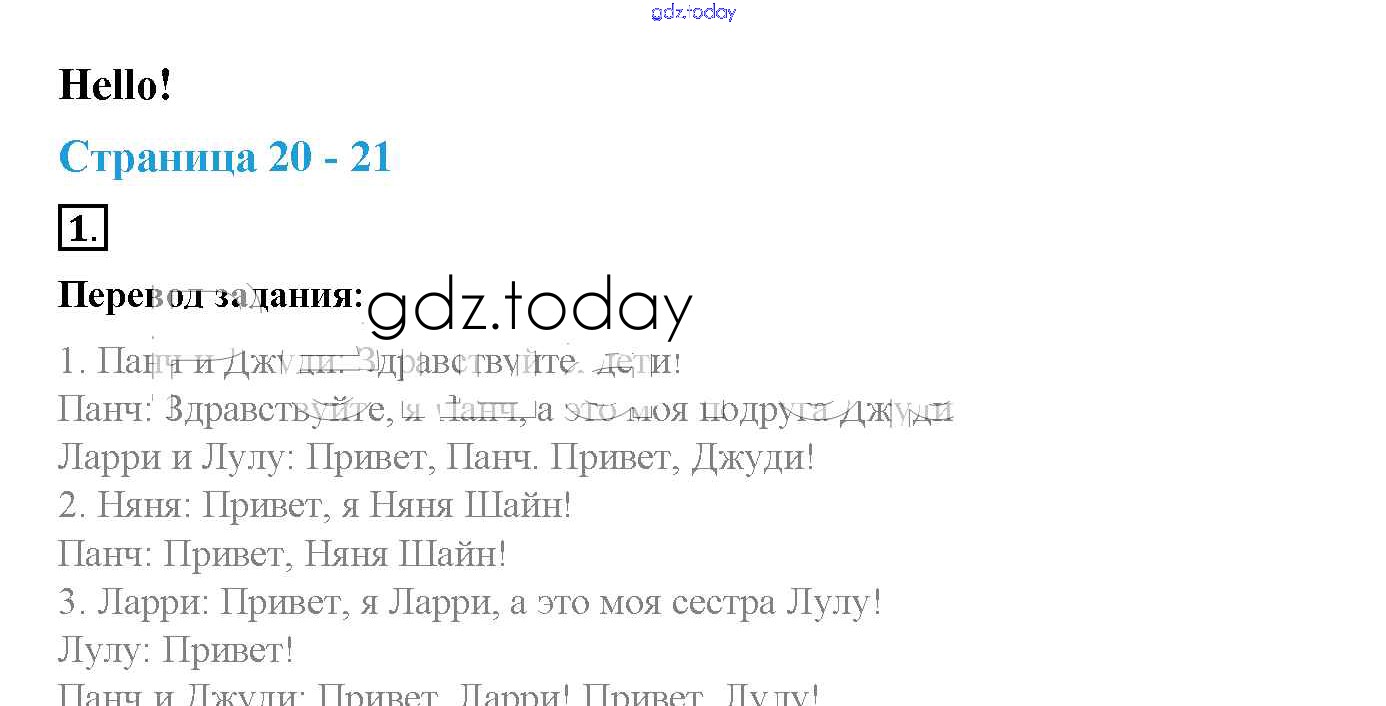 На страницах сайта gdz.today вы найдете учебный и вспомогательный материал, направленный на улучшения знаний школьной программы. ГДЗ - онлайн мир знаний Решение. Учебник 2017. Страницы 20 Учебнику по Английскому языку для 2 класса Быкова, Дули Просвещение, Просвещение Spotlight 2017, 2021