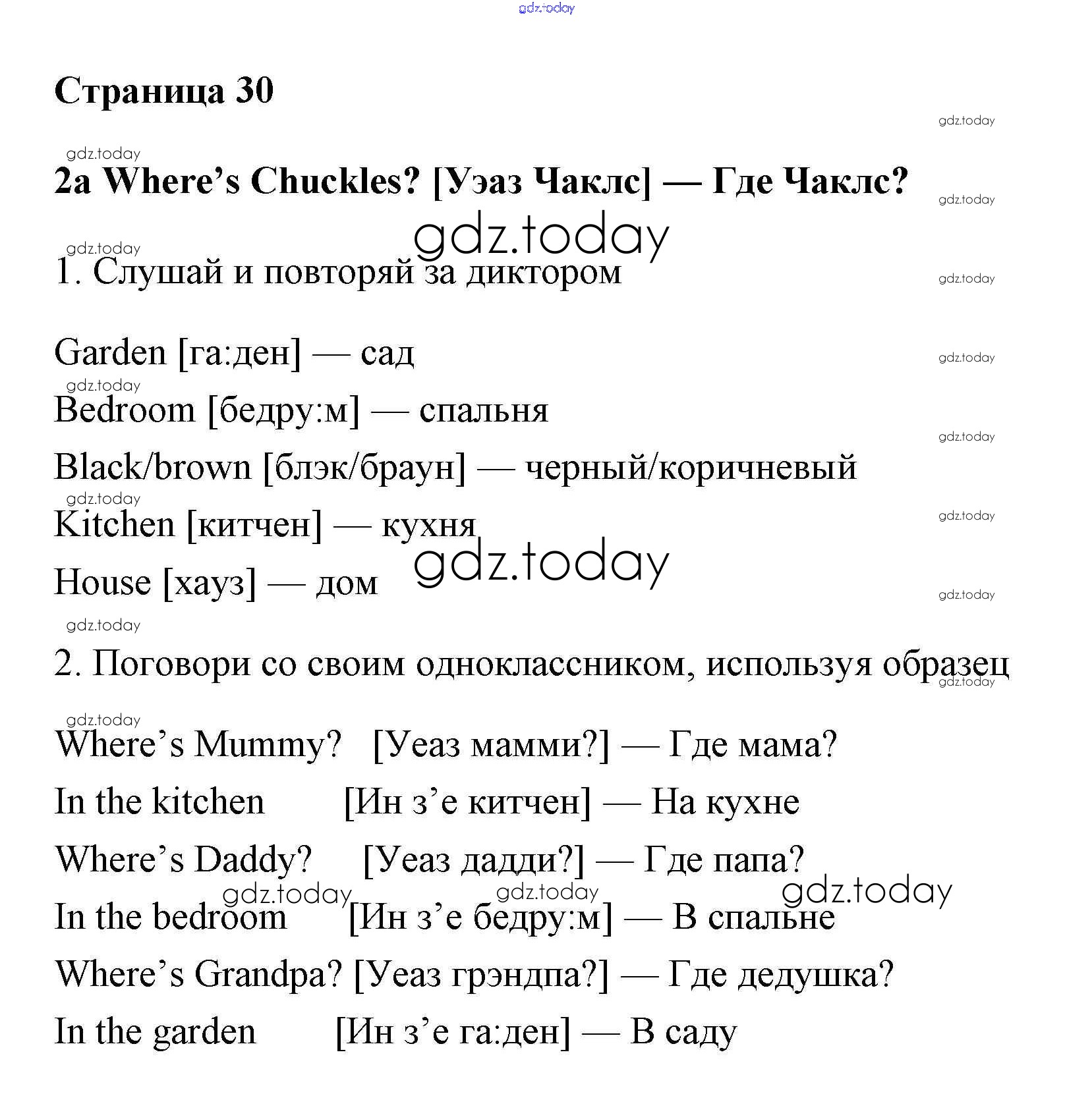 На страницах сайта gdz.today вы найдете учебный и вспомогательный материал, направленный на улучшения знаний школьной программы. ГДЗ - онлайн мир знаний Решение. Учебник 2017. Страницы 30 Учебнику по Английскому языку для 2 класса Быкова, Дули Просвещение, Просвещение Spotlight 2017, 2021