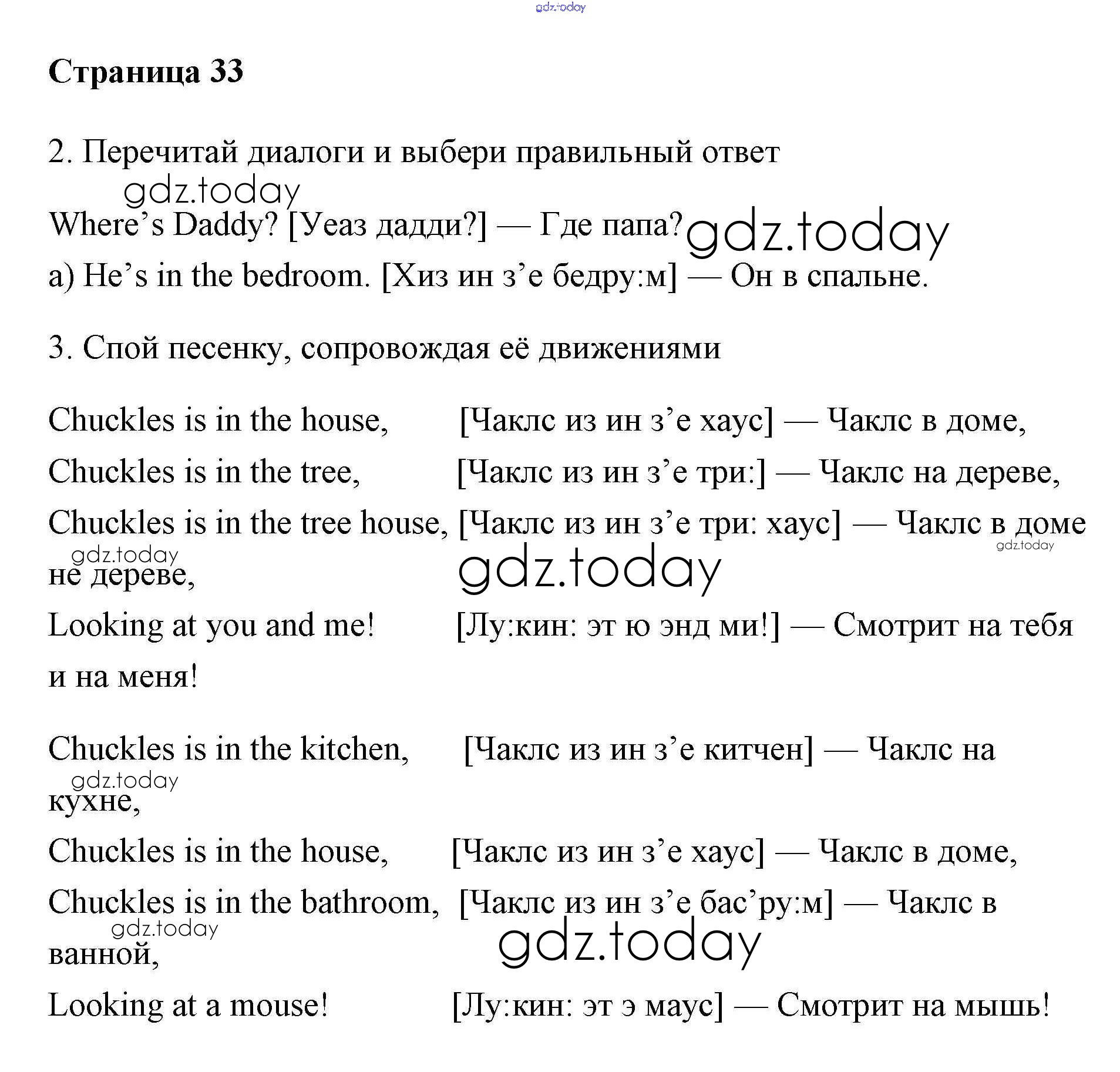 На страницах сайта gdz.today вы найдете учебный и вспомогательный материал, направленный на улучшения знаний школьной программы. ГДЗ - онлайн мир знаний Решение. Учебник 2017. Страницы 33 Учебнику по Английскому языку для 2 класса Быкова, Дули Просвещение, Просвещение Spotlight 2017, 2021