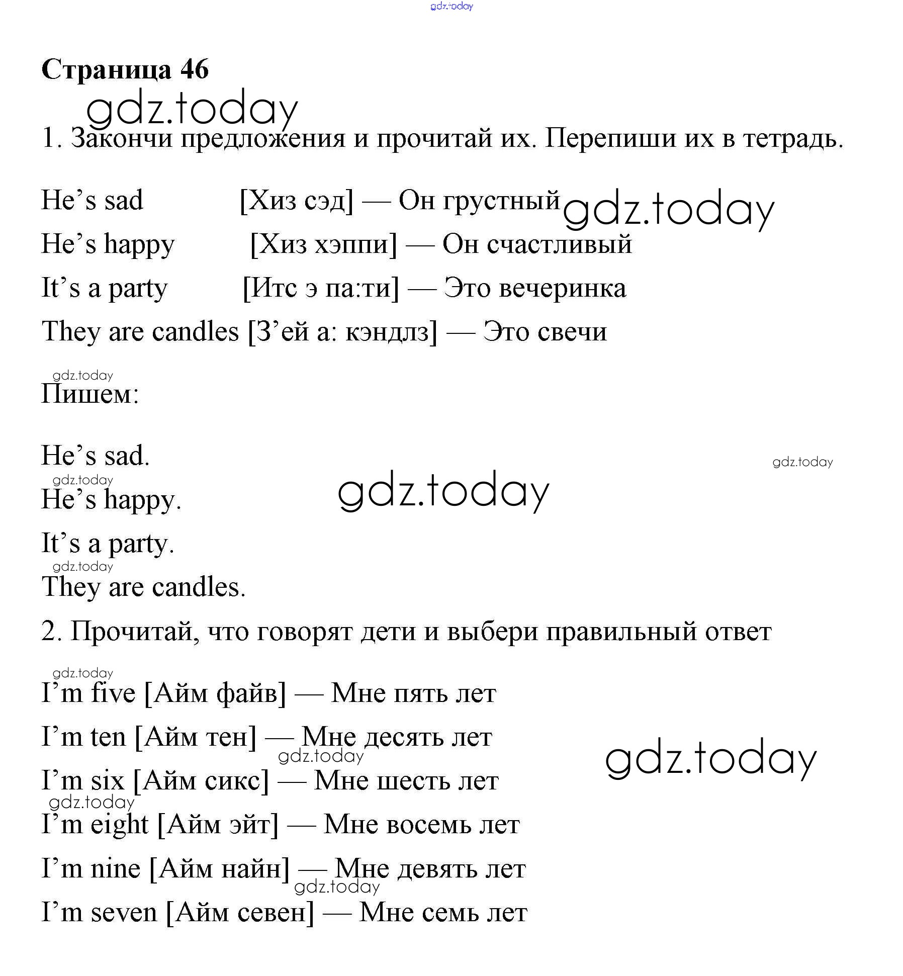 На страницах сайта gdz.today вы найдете учебный и вспомогательный материал, направленный на улучшения знаний школьной программы. ГДЗ - онлайн мир знаний Решение. Учебник 2017. Страницы 46 Учебнику по Английскому языку для 2 класса Быкова, Дули Просвещение, Просвещение Spotlight 2017, 2021