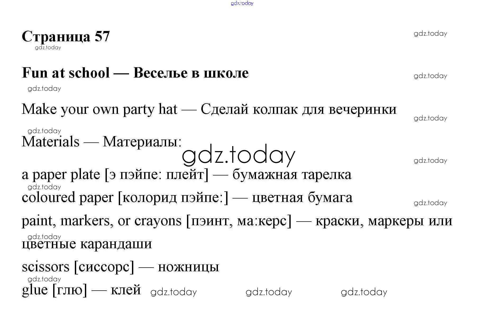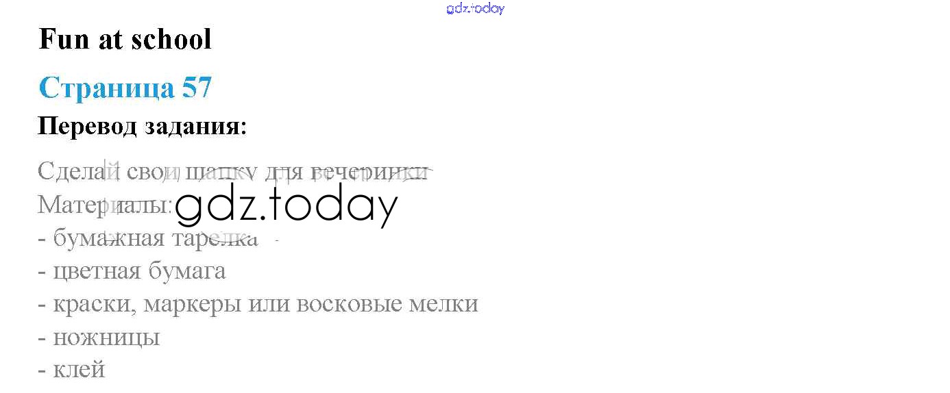 На страницах сайта gdz.today вы найдете учебный и вспомогательный материал, направленный на улучшения знаний школьной программы. ГДЗ - онлайн мир знаний Решение. Учебник 2017. Страницы 57 Учебнику по Английскому языку для 2 класса Быкова, Дули Просвещение, Просвещение Spotlight 2017, 2021