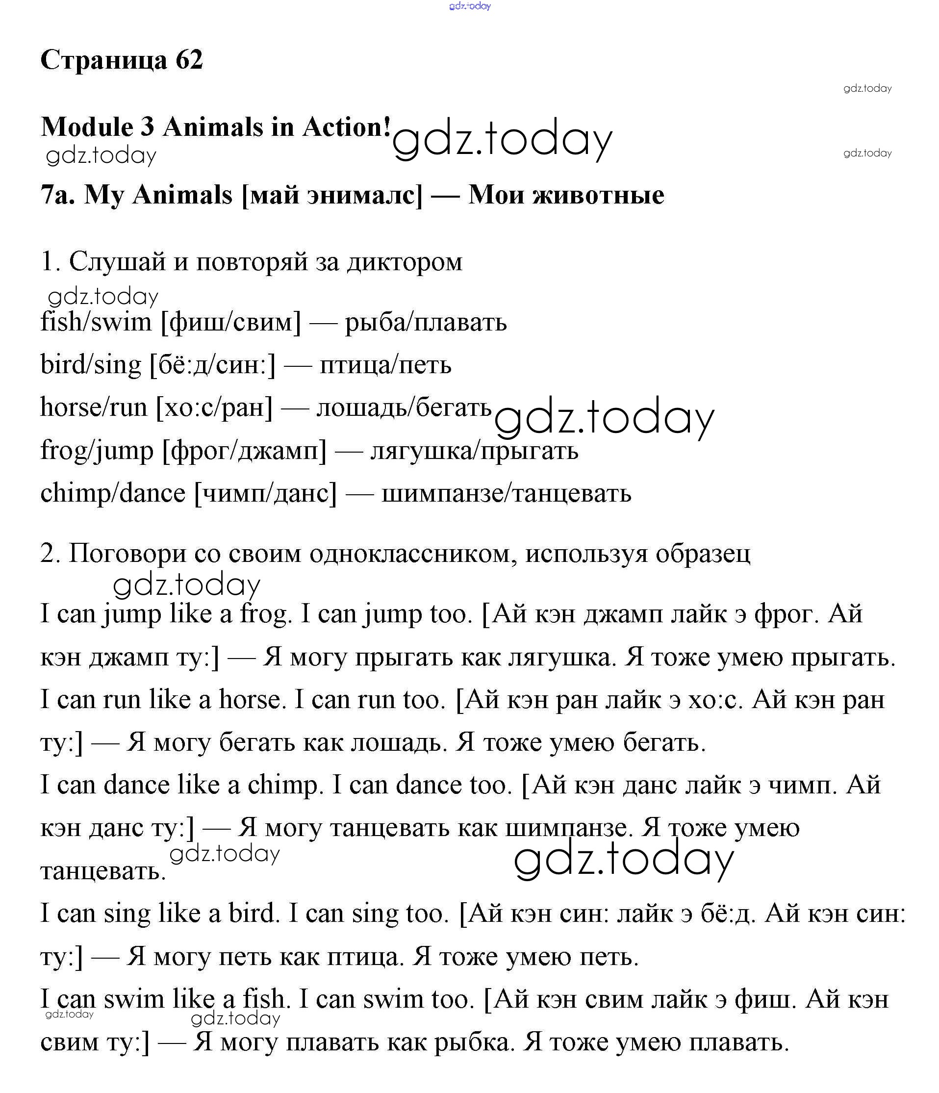 На страницах сайта gdz.today вы найдете учебный и вспомогательный материал, направленный на улучшения знаний школьной программы. ГДЗ - онлайн мир знаний Решение. Учебник 2017. Страницы 62 Учебнику по Английскому языку для 2 класса Быкова, Дули Просвещение, Просвещение Spotlight 2017, 2021