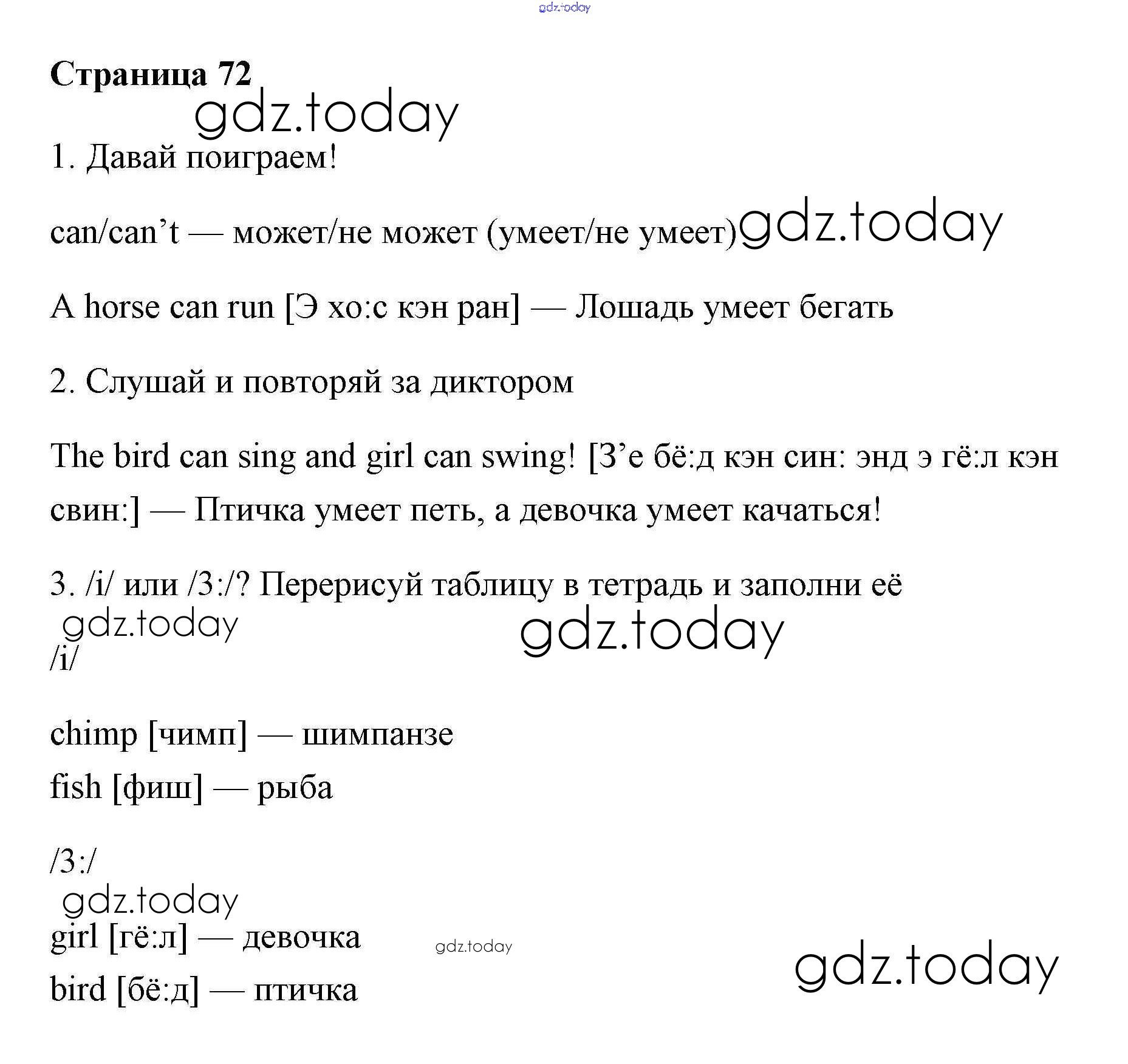 На страницах сайта gdz.today вы найдете учебный и вспомогательный материал, направленный на улучшения знаний школьной программы. ГДЗ - онлайн мир знаний Решение. Учебник 2017. Страницы 72 Учебнику по Английскому языку для 2 класса Быкова, Дули Просвещение, Просвещение Spotlight 2017, 2021