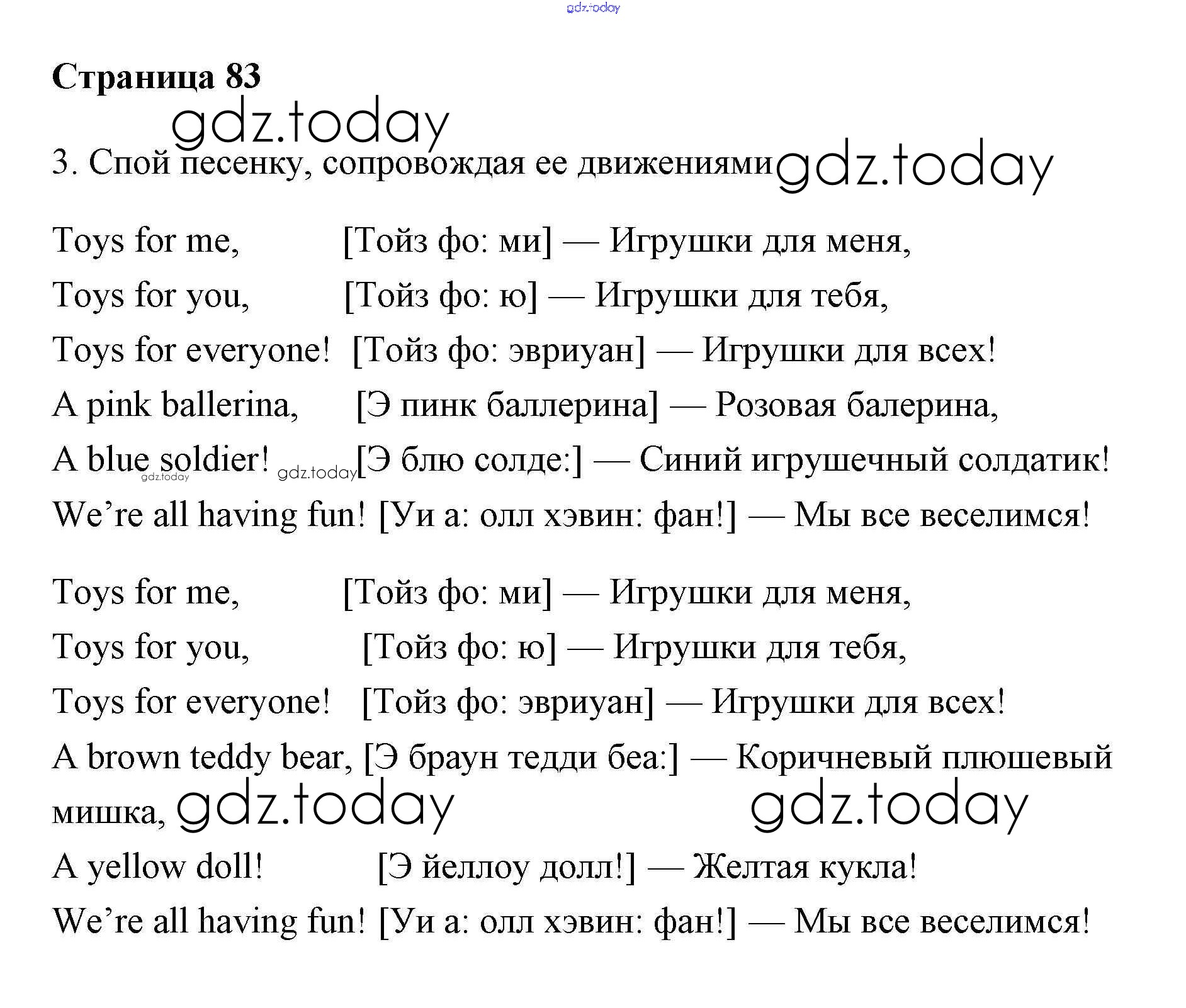 На страницах сайта gdz.today вы найдете учебный и вспомогательный материал, направленный на улучшения знаний школьной программы. ГДЗ - онлайн мир знаний Решение. Учебник 2017. Страницы 83 Учебнику по Английскому языку для 2 класса Быкова, Дули Просвещение, Просвещение Spotlight 2017, 2021