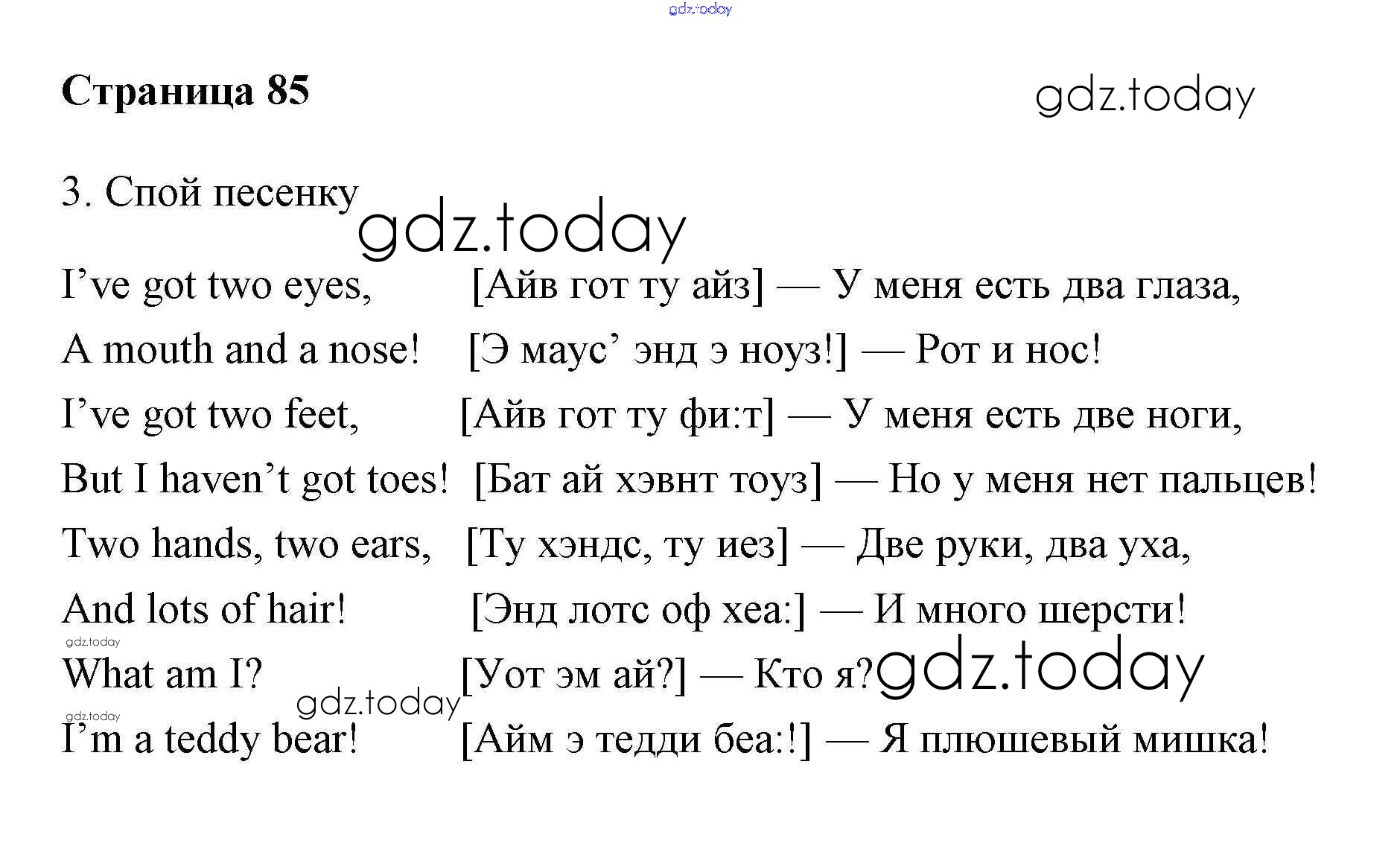 На страницах сайта gdz.today вы найдете учебный и вспомогательный материал, направленный на улучшения знаний школьной программы. ГДЗ - онлайн мир знаний Решение. Учебник 2017. Страницы 85 Учебнику по Английскому языку для 2 класса Быкова, Дули Просвещение, Просвещение Spotlight 2017, 2021