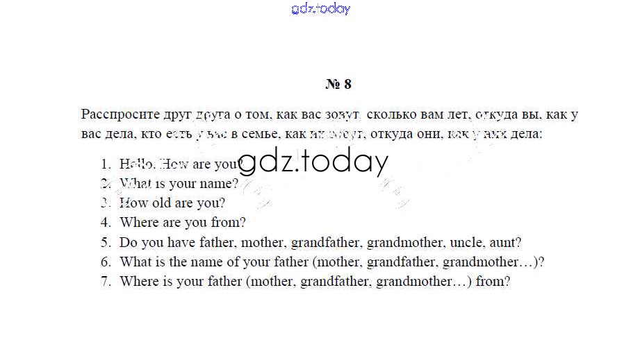 На страницах сайта gdz.today вы найдете учебный и вспомогательный материал, направленный на улучшения знаний школьной программы. ГДЗ - онлайн мир знаний Урок 9 Решение к части 1 8 Учебнику по Английскому языку для 2 класса Верещагина, Бондаренко Углубленный уровень Просвещение 2017