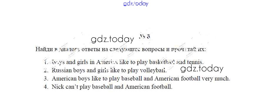 На страницах сайта gdz.today вы найдете учебный и вспомогательный материал, направленный на улучшения знаний школьной программы. ГДЗ - онлайн мир знаний Урок 41 Решение к части 1 8 Учебнику по Английскому языку для 2 класса Верещагина, Бондаренко Углубленный уровень Просвещение 2017