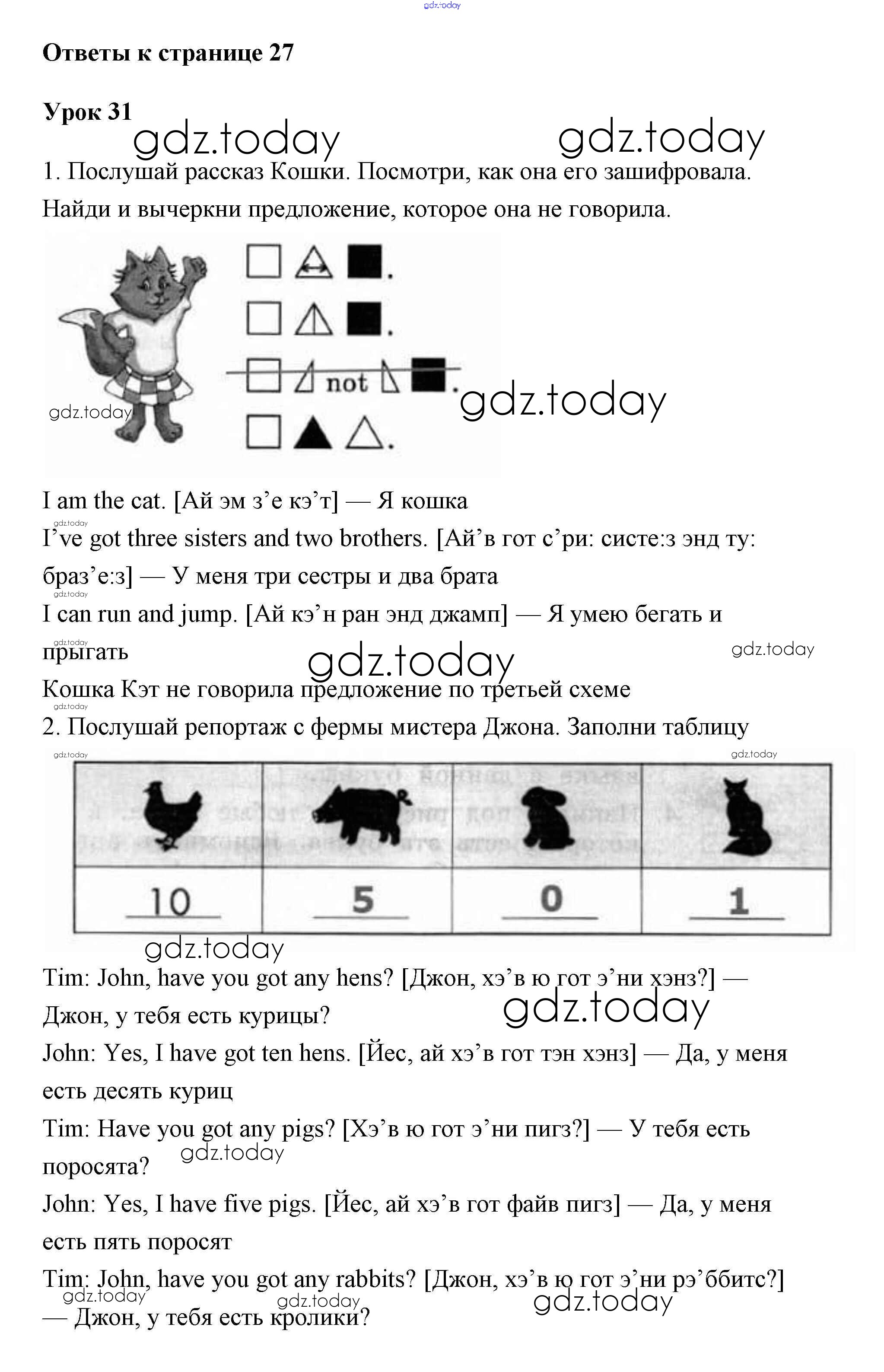 Ответы к Страницы (решение) 27 Рабочей тетради с контрольными работами по Английскому языку для 2 класса Биболетова, Денисенко Титул Enjoy English 2015