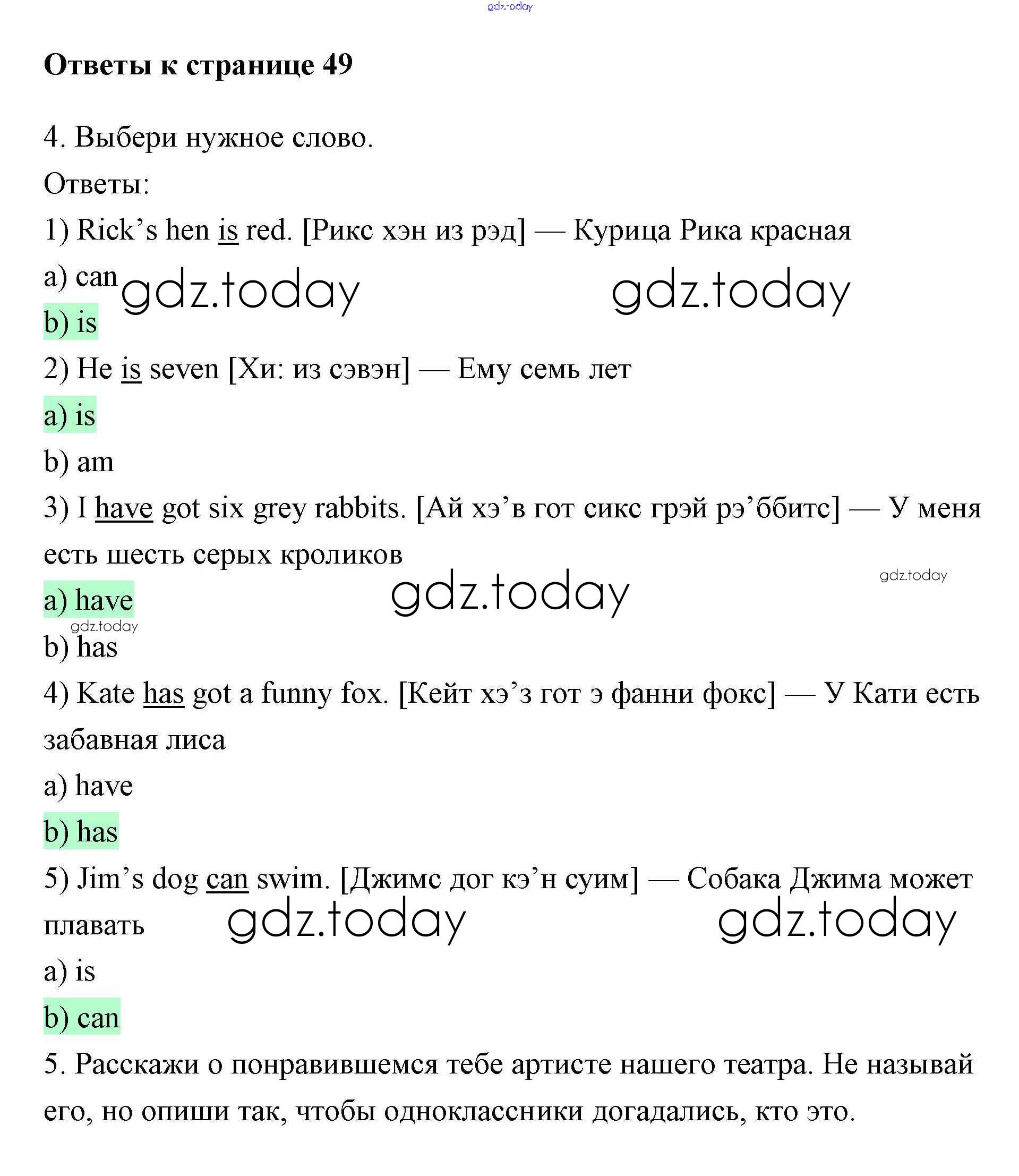 Ответы к Страницы (решение) 49 Рабочей тетради с контрольными работами по Английскому языку для 2 класса Биболетова, Денисенко Титул Enjoy English 2015