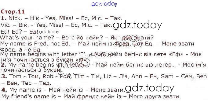 Ответы к Рішення до Сторінки 11 Учебнику по Английскому языку для 2 класса Карпюк Видавництво Астон 2019