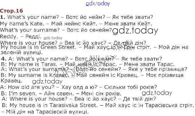 Ответы к Рішення до Сторінки 16 Учебнику по Английскому языку для 2 класса Карпюк Видавництво Астон 2019