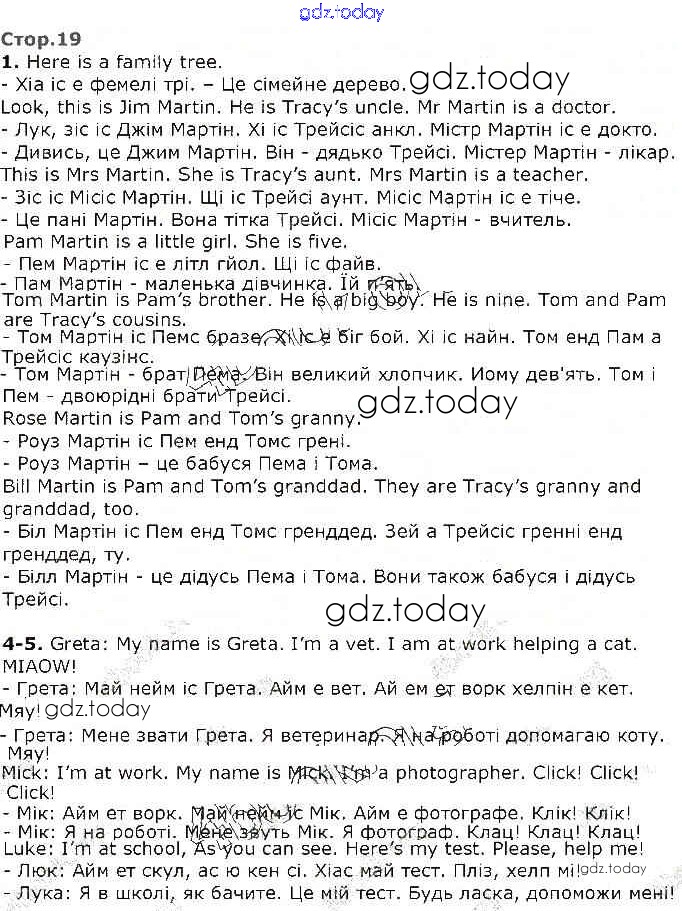 На страницах сайта gdz.today вы найдете учебный и вспомогательный материал, направленный на улучшения знаний школьной программы. ГДЗ - онлайн мир знаний Рішення до Сторінки 19 Учебнику по Английскому языку для 2 класса Карпюк Видавництво Астон 2019