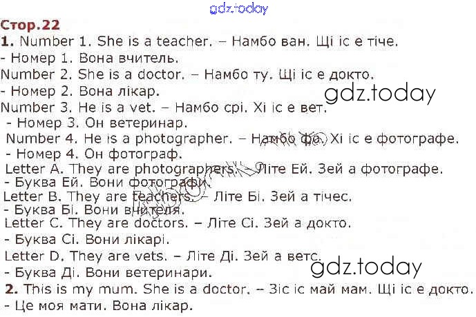 Ответы к Рішення до Сторінки 22 Учебнику по Английскому языку для 2 класса Карпюк Видавництво Астон 2019