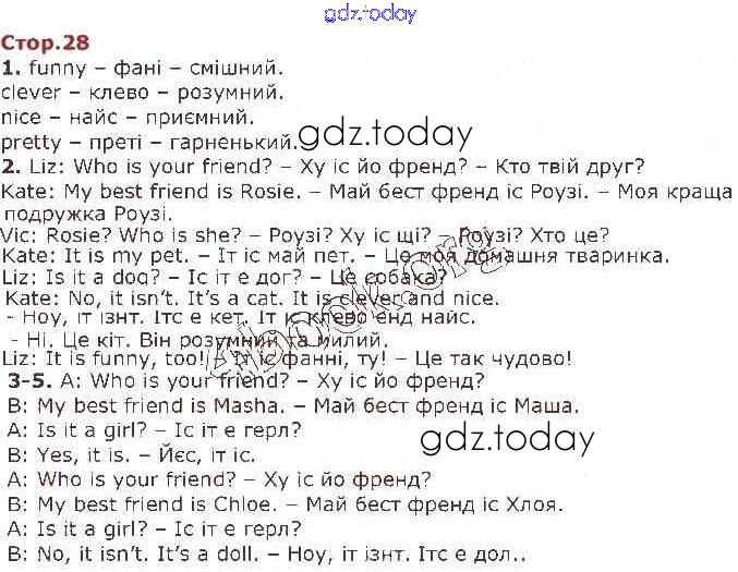 На страницах сайта gdz.today вы найдете учебный и вспомогательный материал, направленный на улучшения знаний школьной программы. ГДЗ - онлайн мир знаний Рішення до Сторінки 28 Учебнику по Английскому языку для 2 класса Карпюк Видавництво Астон 2019