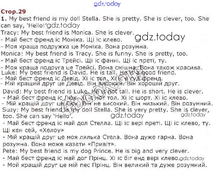 На страницах сайта gdz.today вы найдете учебный и вспомогательный материал, направленный на улучшения знаний школьной программы. ГДЗ - онлайн мир знаний Рішення до Сторінки 29 Учебнику по Английскому языку для 2 класса Карпюк Видавництво Астон 2019