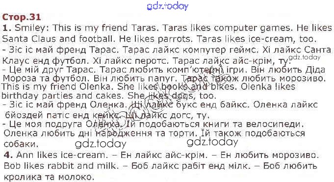 Ответы к Рішення до Сторінки 31 Учебнику по Английскому языку для 2 класса Карпюк Видавництво Астон 2019
