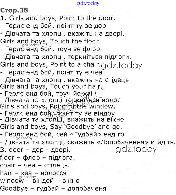 На страницах сайта gdz.today вы найдете учебный и вспомогательный материал, направленный на улучшения знаний школьной программы. ГДЗ - онлайн мир знаний Рішення до Сторінки 38 Учебнику по Английскому языку для 2 класса Карпюк Видавництво Астон 2019