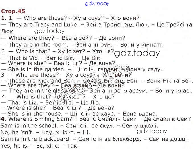 На страницах сайта gdz.today вы найдете учебный и вспомогательный материал, направленный на улучшения знаний школьной программы. ГДЗ - онлайн мир знаний Рішення до Сторінки 45 Учебнику по Английскому языку для 2 класса Карпюк Видавництво Астон 2019