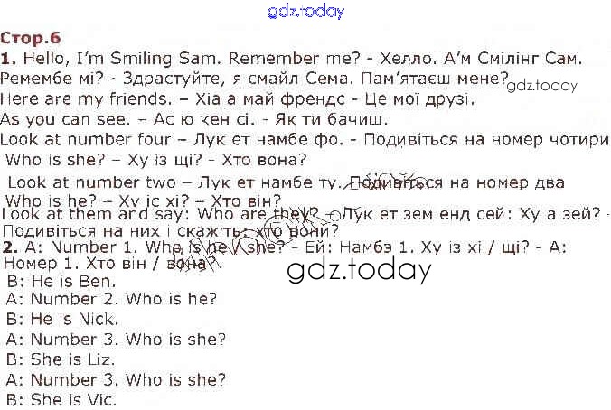 На страницах сайта gdz.today вы найдете учебный и вспомогательный материал, направленный на улучшения знаний школьной программы. ГДЗ - онлайн мир знаний Рішення до Сторінки 6 Учебнику по Английскому языку для 2 класса Карпюк Видавництво Астон 2019