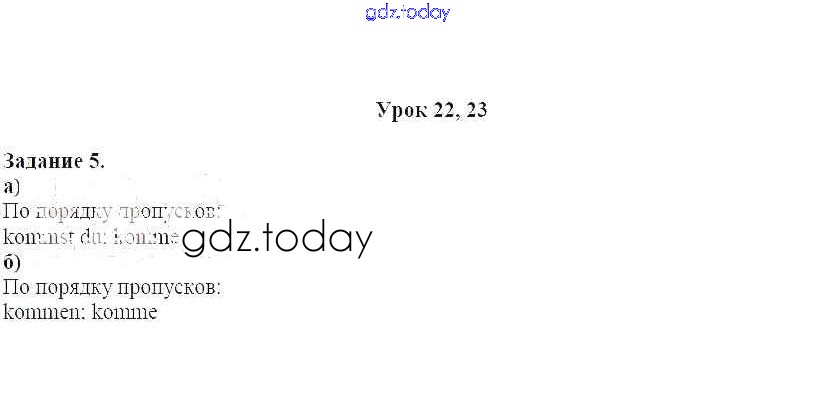 На страницах сайта gdz.today вы найдете учебный и вспомогательный материал, направленный на улучшения знаний школьной программы. ГДЗ - онлайн мир знаний Урок 22-23 Решение к части 1 5 Учебнику по Немецкому языку для 2 класса Бим, Рыжова Просвещение 2014