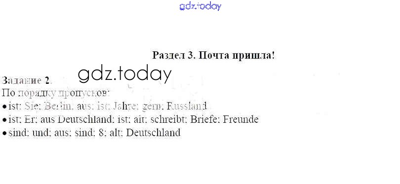 На страницах сайта gdz.today вы найдете учебный и вспомогательный материал, направленный на улучшения знаний школьной программы. ГДЗ - онлайн мир знаний Раздел 3 Глава 1 2 Учебнику по Немецкому языку для 2 класса Бим, Рыжова Просвещение 2014