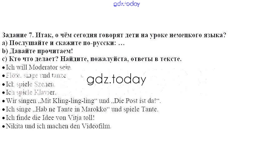 На страницах сайта gdz.today вы найдете учебный и вспомогательный материал, направленный на улучшения знаний школьной программы. ГДЗ - онлайн мир знаний Раздел 2 Глава 4 7 Учебнику по Немецкому языку для 2 класса Бим, Рыжова Просвещение 2014