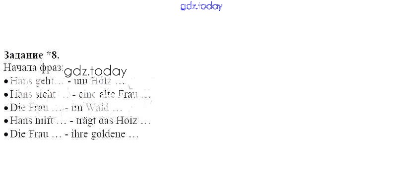 На страницах сайта gdz.today вы найдете учебный и вспомогательный материал, направленный на улучшения знаний школьной программы. ГДЗ - онлайн мир знаний Раздел 4-5 Глава 5 8 Учебнику по Немецкому языку для 2 класса Бим, Рыжова Просвещение 2014