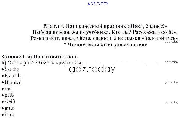 На страницах сайта gdz.today вы найдете учебный и вспомогательный материал, направленный на улучшения знаний школьной программы. ГДЗ - онлайн мир знаний Раздел 4 Глава 6 1 Учебнику по Немецкому языку для 2 класса Бим, Рыжова Просвещение 2014
