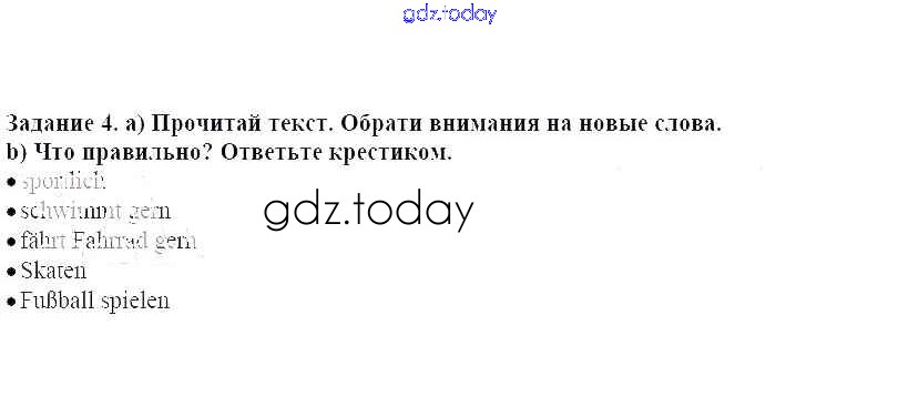 На страницах сайта gdz.today вы найдете учебный и вспомогательный материал, направленный на улучшения знаний школьной программы. ГДЗ - онлайн мир знаний Раздел 4 Глава 6 4 Учебнику по Немецкому языку для 2 класса Бим, Рыжова Просвещение 2014