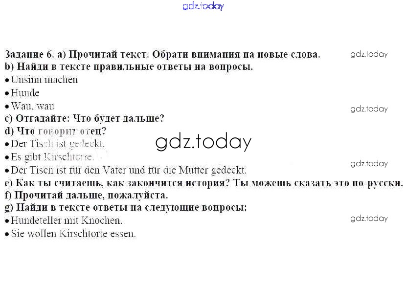 На страницах сайта gdz.today вы найдете учебный и вспомогательный материал, направленный на улучшения знаний школьной программы. ГДЗ - онлайн мир знаний Раздел 4 Глава 6 6 Учебнику по Немецкому языку для 2 класса Бим, Рыжова Просвещение 2014