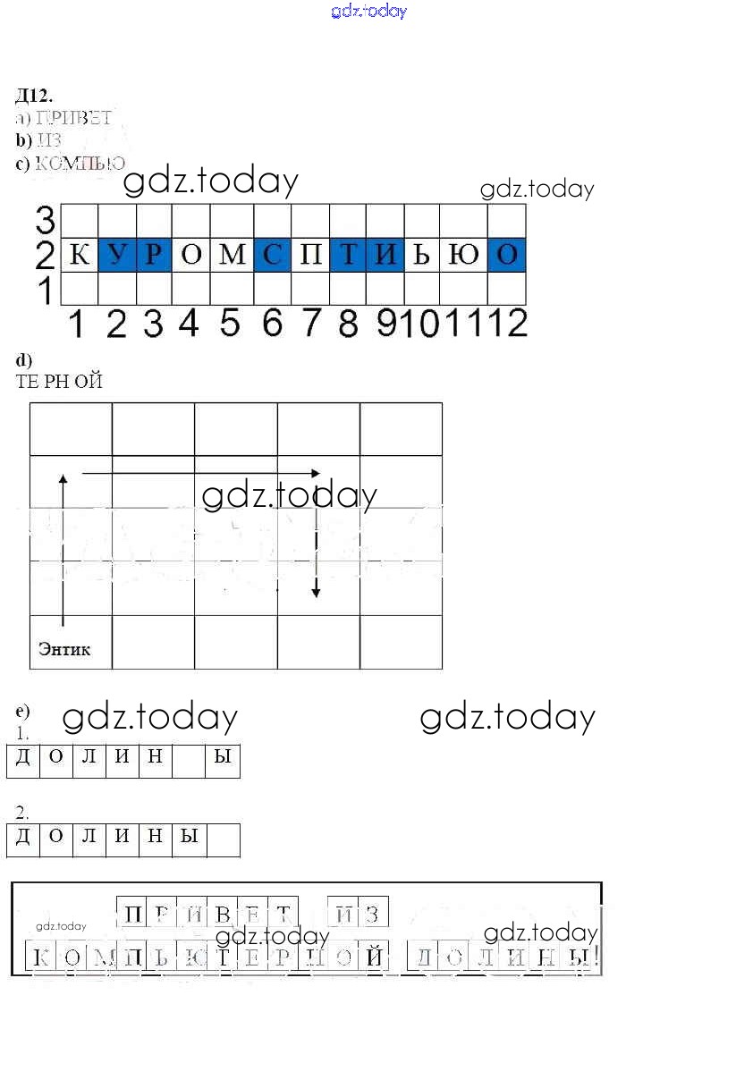 На страницах сайта gdz.today вы найдете учебный и вспомогательный материал, направленный на улучшения знаний школьной программы. ГДЗ - онлайн мир знаний Дополнительные задания Часть 2. Решение 12 Учебнику по Информатике для 2 класса Бененсон, Паутова Академкнига Перспективная начальная школа 2017