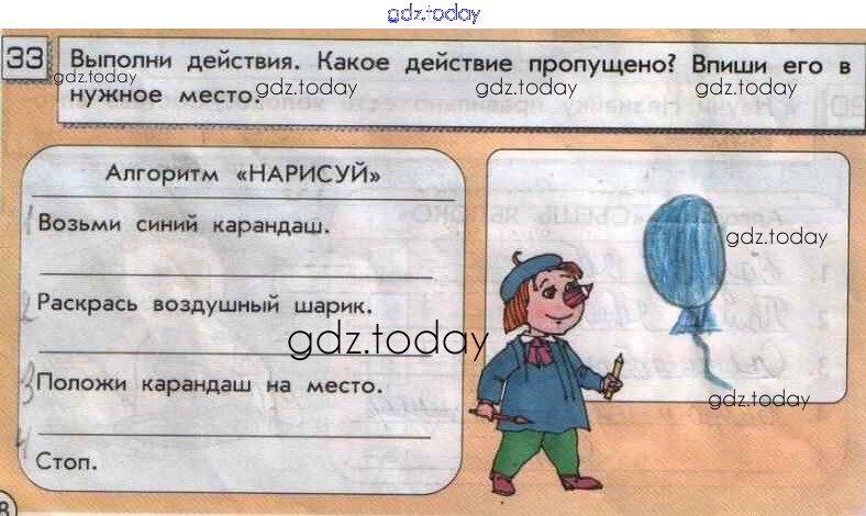 На страницах сайта gdz.today вы найдете учебный и вспомогательный материал, направленный на улучшения знаний школьной программы. ГДЗ - онлайн мир знаний Упражнения Раздел 2 33 Учебнику по Информатике для 2 класса Горячев, Горина Баласс Школа 2100 2011