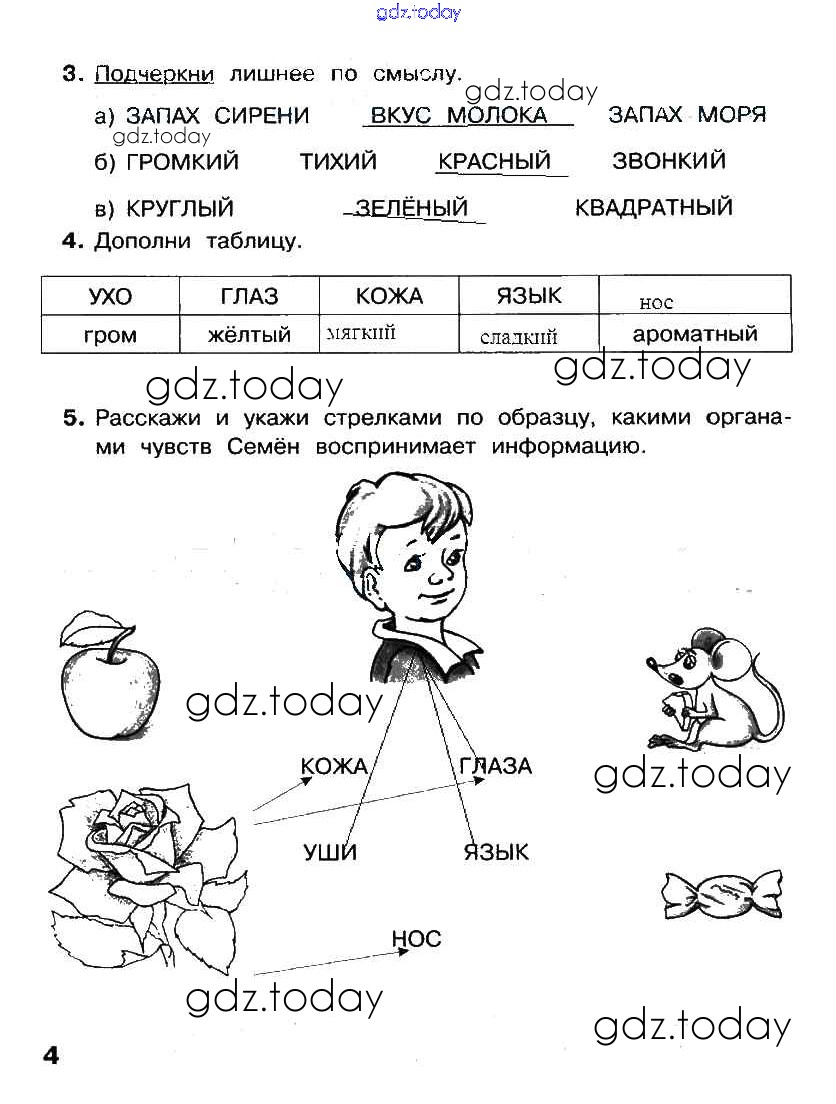 На страницах сайта gdz.today вы найдете учебный и вспомогательный материал, направленный на улучшения знаний школьной программы. ГДЗ - онлайн мир знаний §1. Человек и информация Решение к части 1. Страницы стр. 4 Рабочей тетради по Информатике для 2 класса Матвеева, Челак Бином УМК 2012