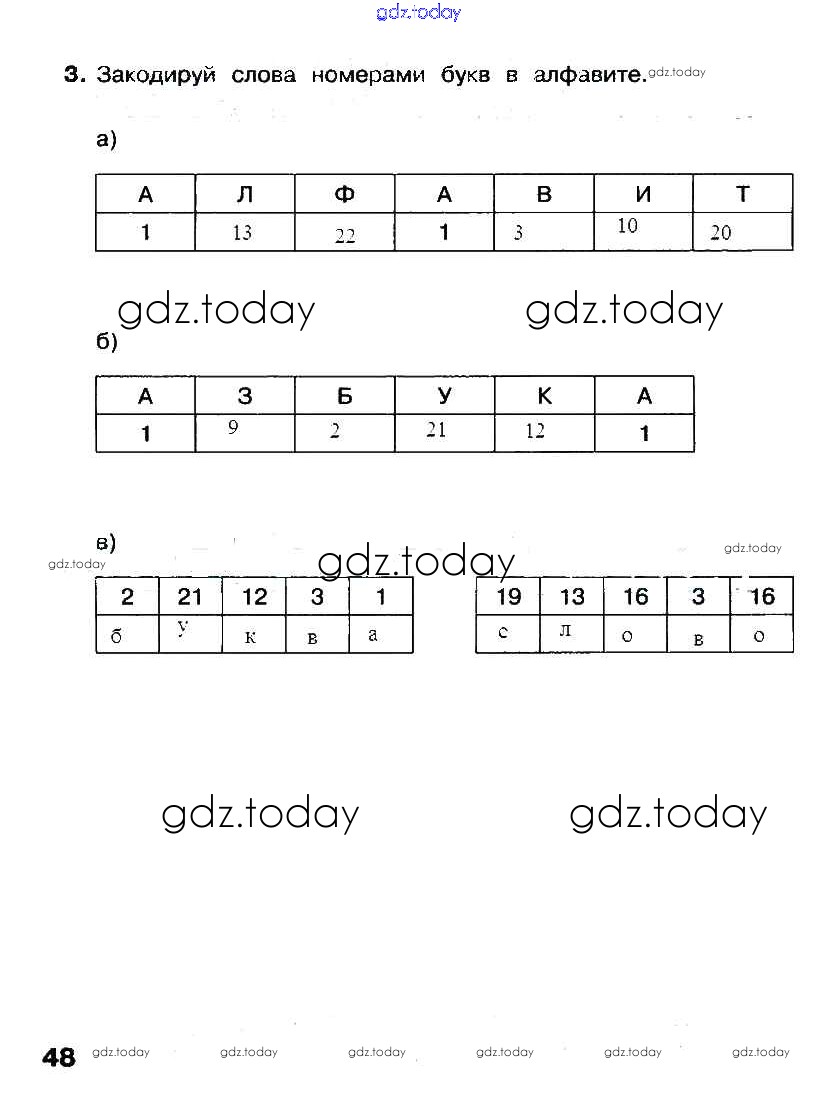 На страницах сайта gdz.today вы найдете учебный и вспомогательный материал, направленный на улучшения знаний школьной программы. ГДЗ - онлайн мир знаний Повторение к главе 2 Решение к части 1. Страницы стр. 48 Рабочей тетради по Информатике для 2 класса Матвеева, Челак Бином УМК 2012