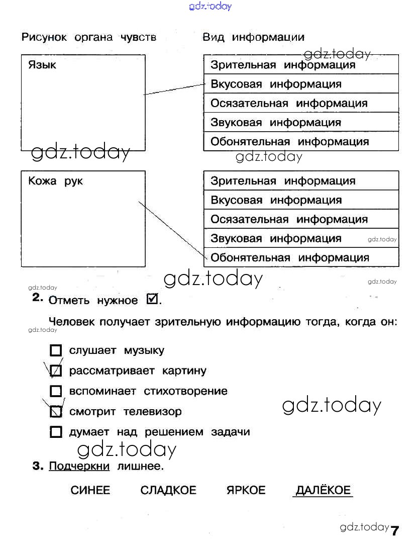 На страницах сайта gdz.today вы найдете учебный и вспомогательный материал, направленный на улучшения знаний школьной программы. ГДЗ - онлайн мир знаний §2. Какая бывает информация Решение к части 1. Страницы стр. 7 Рабочей тетради по Информатике для 2 класса Матвеева, Челак Бином УМК 2012