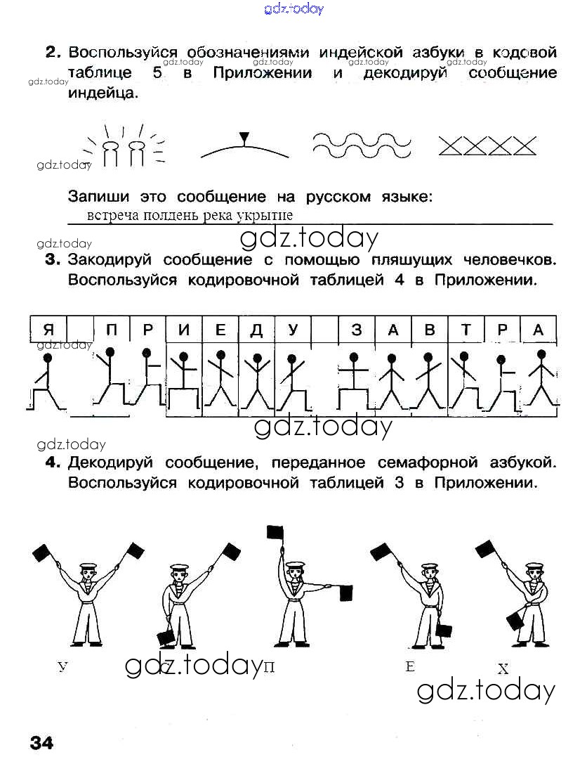 На страницах сайта gdz.today вы найдете учебный и вспомогательный материал, направленный на улучшения знаний школьной программы. ГДЗ - онлайн мир знаний §7. Кодирование информации Решение к части 1. Страницы стр. 34 Рабочей тетради по Информатике для 2 класса Матвеева, Челак Бином УМК 2012