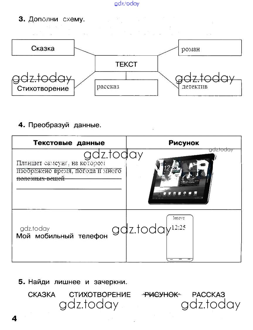 На страницах сайта gdz.today вы найдете учебный и вспомогательный материал, направленный на улучшения знаний школьной программы. ГДЗ - онлайн мир знаний §10. Текстовые данные Решение к части 2. Страницы стр. 4 Рабочей тетради по Информатике для 2 класса Матвеева, Челак Бином УМК 2012