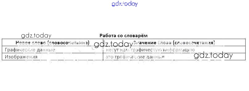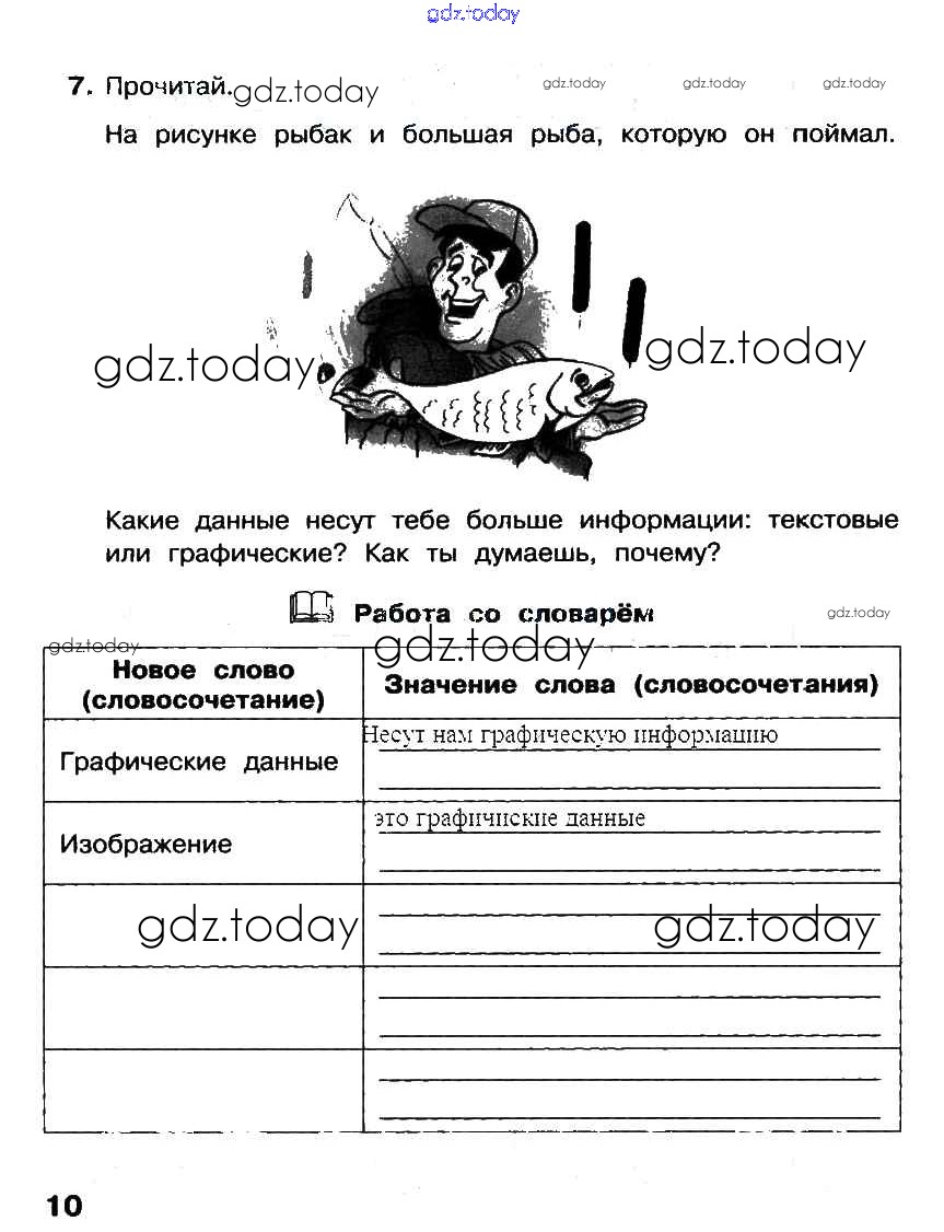 На страницах сайта gdz.today вы найдете учебный и вспомогательный материал, направленный на улучшения знаний школьной программы. ГДЗ - онлайн мир знаний §11. Графические данные Решение к части 2. Страницы стр. 10 Рабочей тетради по Информатике для 2 класса Матвеева, Челак Бином УМК 2012