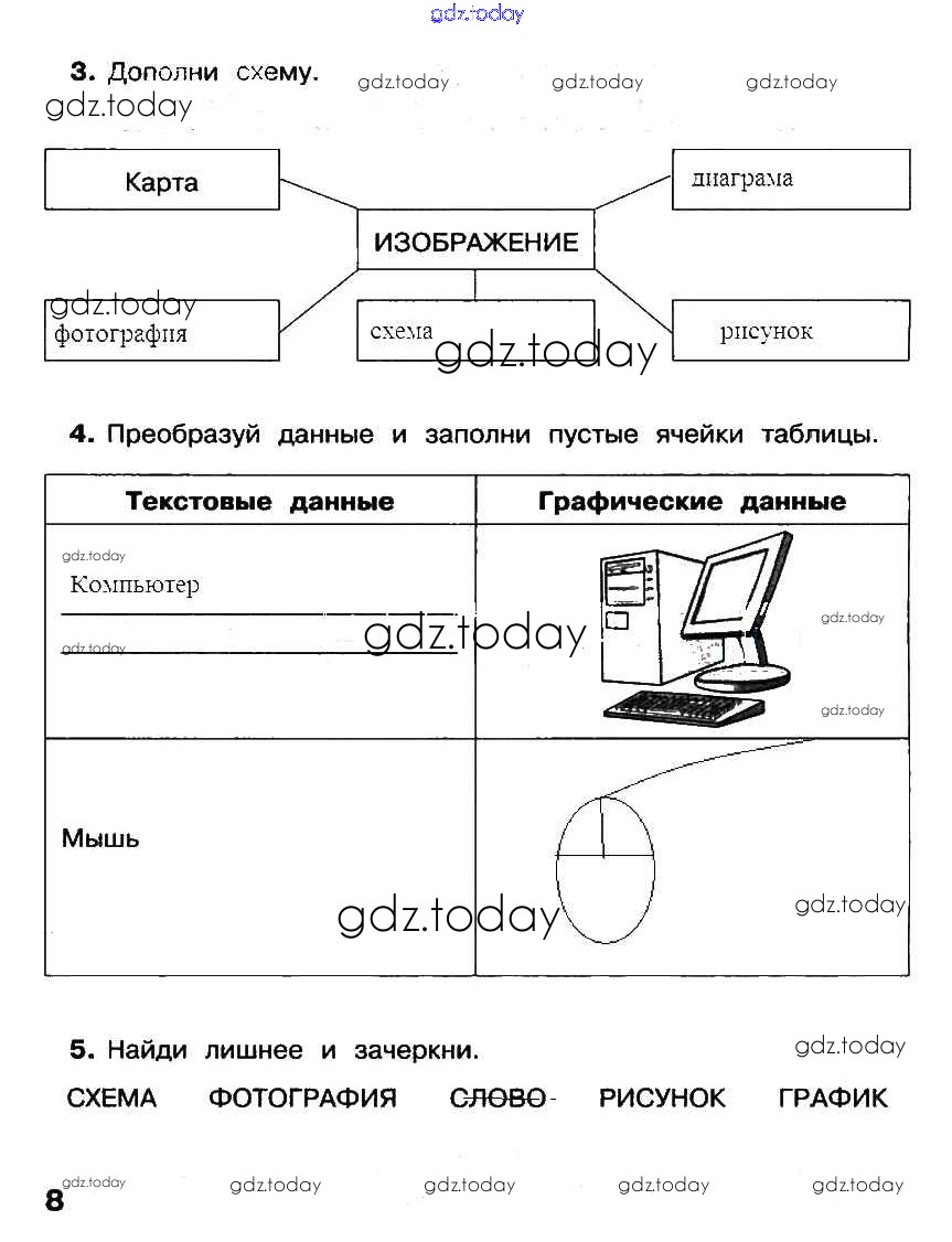 На страницах сайта gdz.today вы найдете учебный и вспомогательный материал, направленный на улучшения знаний школьной программы. ГДЗ - онлайн мир знаний §11. Графические данные Решение к части 2. Страницы стр. 8 Рабочей тетради по Информатике для 2 класса Матвеева, Челак Бином УМК 2012