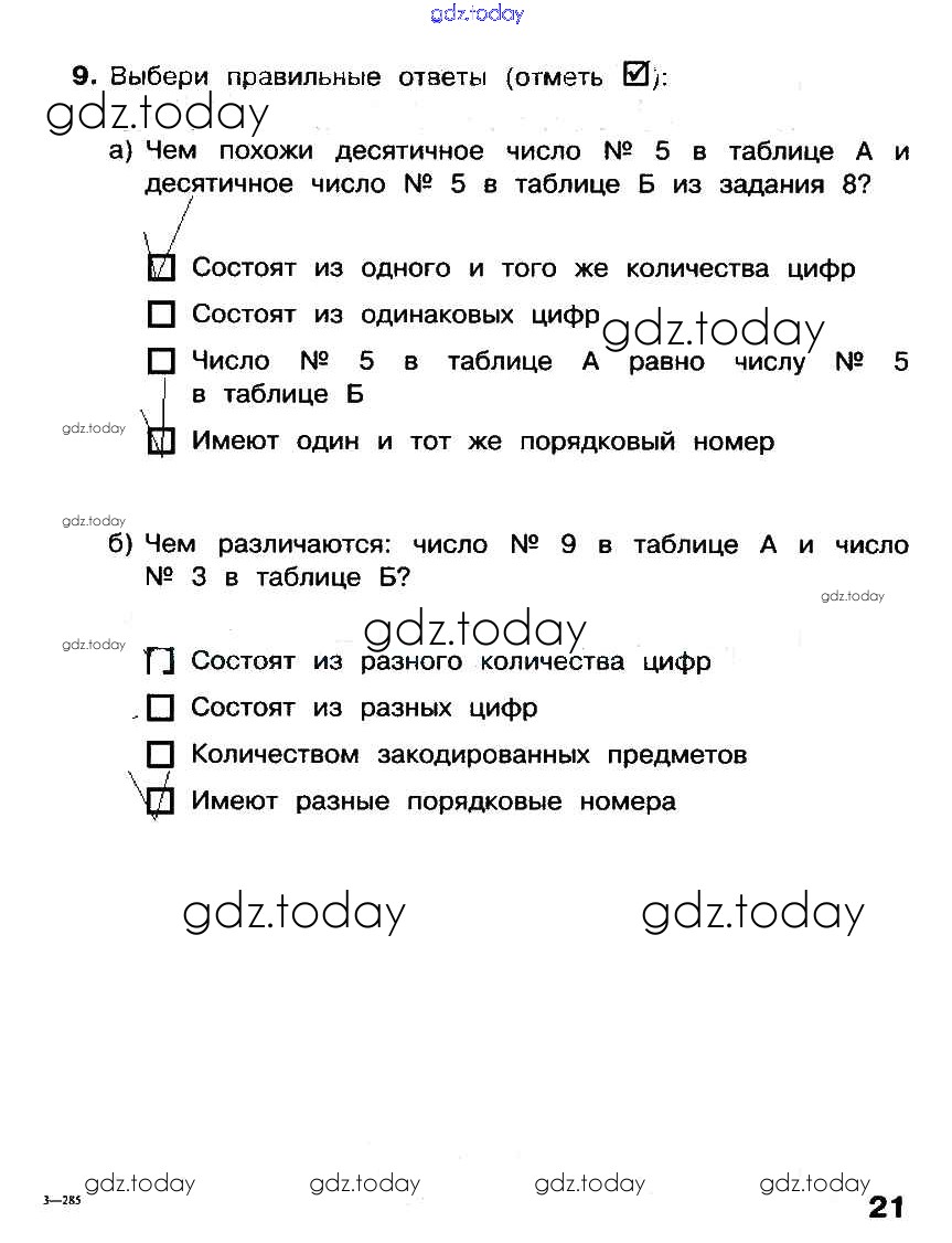 На страницах сайта gdz.today вы найдете учебный и вспомогательный материал, направленный на улучшения знаний школьной программы. ГДЗ - онлайн мир знаний §13. Десятичное кодирование Решение к части 2. Страницы стр. 21 Рабочей тетради по Информатике для 2 класса Матвеева, Челак Бином УМК 2012