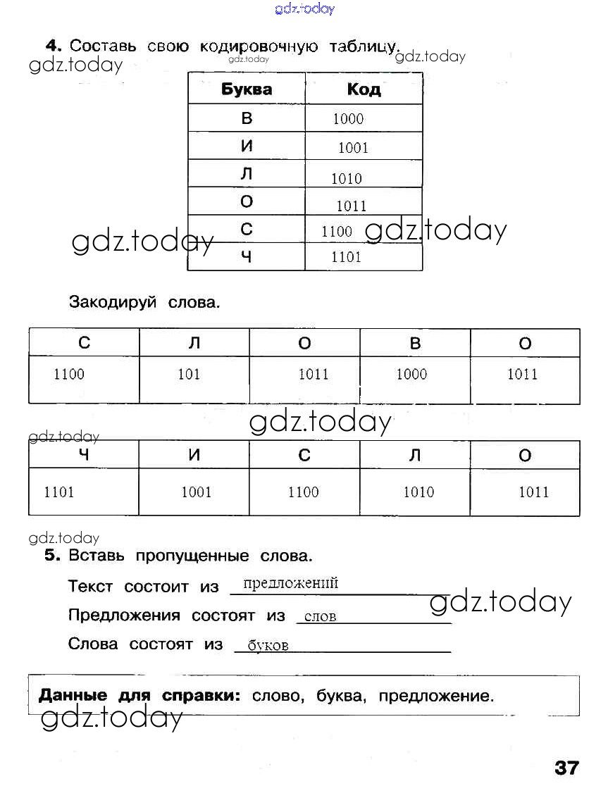 На страницах сайта gdz.today вы найдете учебный и вспомогательный материал, направленный на улучшения знаний школьной программы. ГДЗ - онлайн мир знаний Повторение к главе 3 Решение к части 2. Страницы стр. 37 Рабочей тетради по Информатике для 2 класса Матвеева, Челак Бином УМК 2012