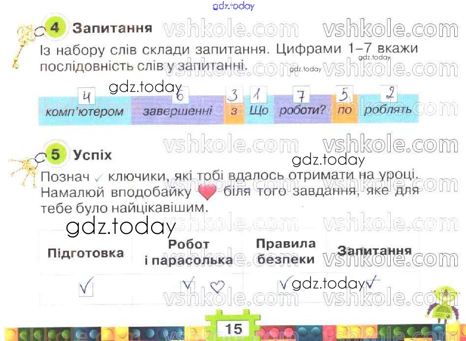 На страницах сайта gdz.today вы найдете учебный и вспомогательный материал, направленный на улучшения знаний школьной программы. ГДЗ - онлайн мир знаний Рішення до Сторінки 15 Рабочей тетради по Информатике для 2 класса Барна, Морзе Орiон 2019