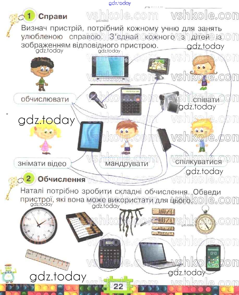На страницах сайта gdz.today вы найдете учебный и вспомогательный материал, направленный на улучшения знаний школьной программы. ГДЗ - онлайн мир знаний Рішення до Сторінки 22 Рабочей тетради по Информатике для 2 класса Барна, Морзе Орiон 2019