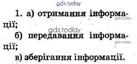 На страницах сайта gdz.today вы найдете учебный и вспомогательный материал, направленный на улучшения знаний школьной программы. ГДЗ - онлайн мир знаний Зберігаємо, обробляємо, передаємо Рішення до Поняття про повiдомлення, iнформацiю та iнформацiйнi процеси 1 Учебнику по Информатике для 2 класса Коршунова Генеза 2012