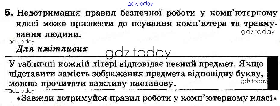 На страницах сайта gdz.today вы найдете учебный и вспомогательный материал, направленный на улучшения знаний школьной программы. ГДЗ - онлайн мир знаний У комп'ютерному класі Рішення до Роздiл 1 5 Учебнику по Информатике для 2 класса Ривкинд, Ломаковская Освiта 2012